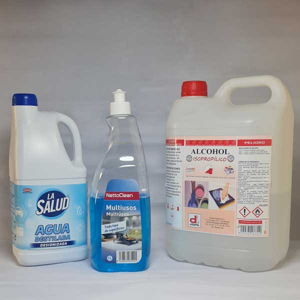 - Alcohol Isopropílico: El alcohol isopropílico es la base de nuestro limpiador casero. A diferencia de otros productos, el alcohol isopropílico no deja residuos ni manchas. Su rápida evaporación asegura que no afecte las juntas del aerógrafo, manteniendo todas las piezas en perfecto estado.