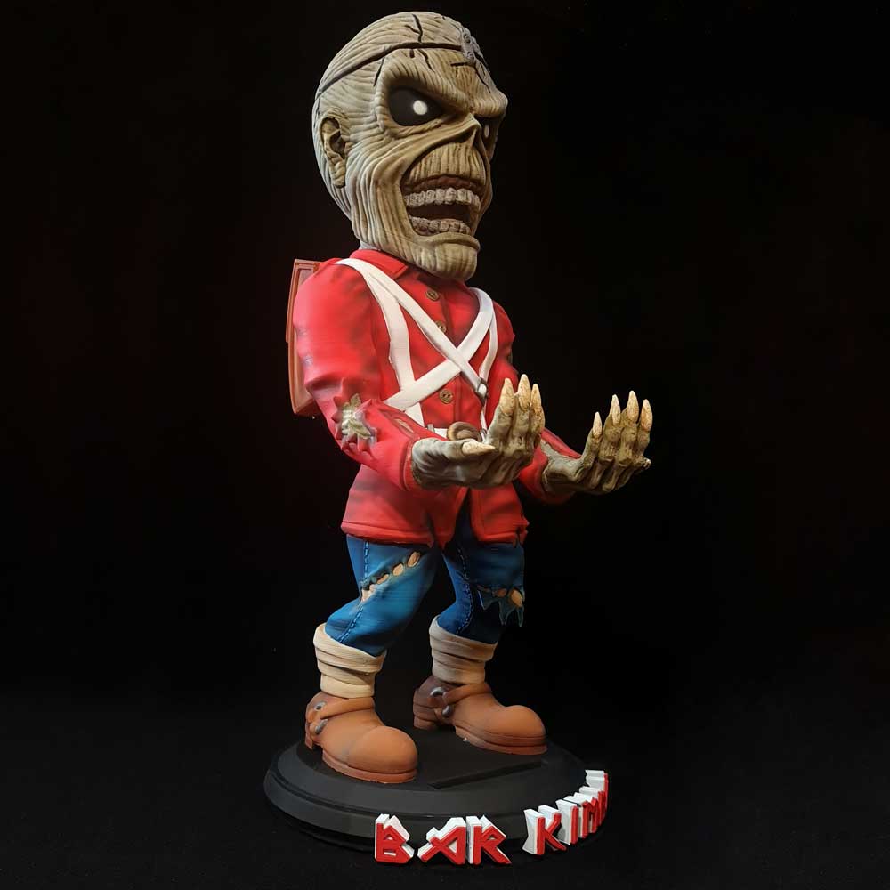 Esta Figura de Iron Maiden o Expositor de bebidas mejor dicho, es uno de los proyectos que más me ha gustado en todos los sentidos, en el aspecto sentimental porque me he criado escuchando Iron Maiden y en el aspecto creativo, porque ha supuesto todo un reto tanto en la personalización como en el desarrollo de la idea.
