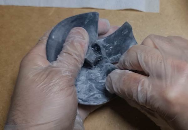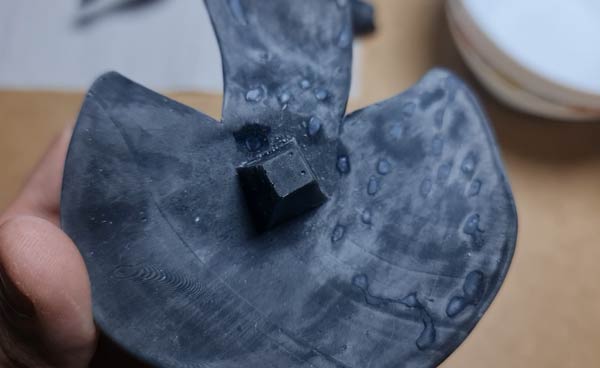 El proceso es el siguiente, sumerge un trozo de lija en una vaso con agua y lija suavemente cada una de las piezas. En caso de que los soportes hayan dejado marcas muy profundas en las piezas, puedes disimularlas con la propia resina de la impresora o con masilla.